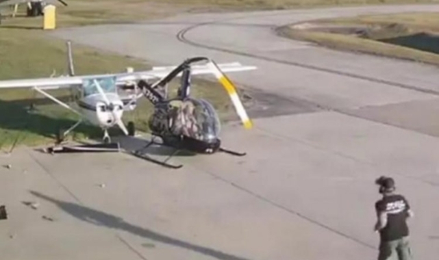 ABD'nin Teksas eyaletindeki Pearland Bölgesel Havalimanı'nda kalkış yapacak olan bir helikopter, park halindeki uçağa çarptı.