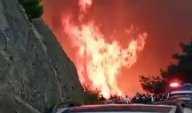 Alevler karayolunu böyle sardı, makam araçları az daha yanıyordu