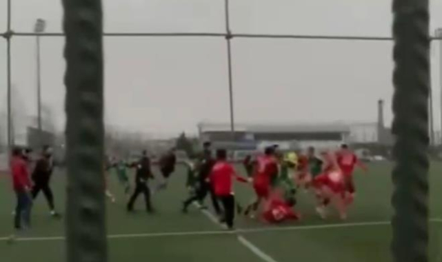 Bursa'da oynanan amatör bir maç sonrası, iki takımın oyuncuları arasında kavga çıktı. Yeşil saha bir anda boks ringine döndü.