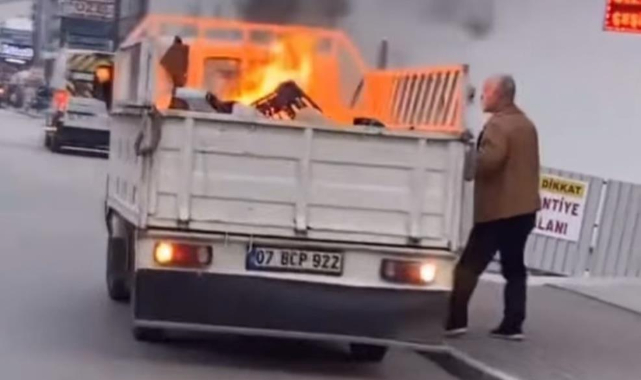 Attığı sigara kamyonetin kasasındaki malzemeleri tutuşturdu