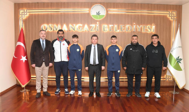 Osmangazi Belediye Başkanı Erkan Aydın, Sırbistan’da düzenlenecek Gymnasium U15 ISF Dünya Şampiyonası’nda Türkiye’yi temsil edecek olan Osmangazi Belediyespor atletizm sporcuları Yağız Çorlak ve Muhammed Esad Ayna’yı makamında ağırladı. Başkan Aydın, madalya mücadelesi verecek milli sporculara başarılar diledi.