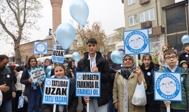 Tüm Türkiye genelinde olduğu gibi Bursa’da da, diyabet farkındalığını artırmak amacıyla 14 Kasım Dünya Diyabet Günü’nde çeşitli etkinlikler düzenlendi.Bursa Büyükşehir Belediyesi Sağlık İşleri Dairesi Başkanlığı Halk Sağlığı ve Sağlıklı Yaşam Şube Müdürlüğü ile Bursa Tip 1 Diyabetliler Derneği’nin iş birliğiyle gerçekleştirilen farkındalık etkinlikleri, halkın ilgisini çekmek ve bilinçlendirme sağlamak için renkli bir yürüyüşle başladı.Cumhuriyet Caddesi boyunca Büyükşehir Belediyesi Bandosu eşliğinde yapılan yürüyüşe, diyabetli çocuklar ve aileleri coşkuyla katıldı.Etkinliğe Büyükşehir Belediyesi Genel Sekreter Yardımcısı Mehmet Emin Direkçi, Sağlık İşleri Dairesi Başkanı Düşünsel Şentürk, İl Sağlık Müdürlüğü Halk Sağlığı Hizmetleri Başkan Yardımcısı Dr. Yunus Arslan, Bursa Tip 1 Diyabetliler Dernek Başkanı Yadigar Aydın ve Bursa Uludağ Üniversitesi Tıp Fakültesi Dekan Yardımcısı Prof. Dr. Erdal Eren de katılarak destek verdi.