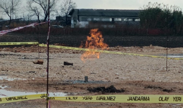 Bursa'nın Karacabey ilçesinde bir ketçap fabrikasının depo kısmında zemin etüdü yapan operatör, yaklaşık 20 metre kazı yaptıktan sonra suyla karışık gaz çıktığını fark etti. Olay yerine gelen BOTAŞ ekipleri, zeminden çıkan gazın yüzde 80 doğal gaz olduğunu tespit etti.Bursa'nın Karacabey ilçesi Uluabat köyü Aktaş mevkiinde bulunan bir ketçap fabrikasının depo kısmında zemin etüdü yapan kepçe operatörü Emrah Us, yaklaşık 20 metre kazı yaptıktan sonra suyla karışık gaz çıktığını fark etti. Kepçe operatörü hemen yetkililere haber verdi. İhbar üzerine olay yerine jandarma ve BOTAŞ ekipleri geldi. İnceleme yapan ekipler, çıkan gazın yüzde 80 doğal gaz olduğunu tespit etti. 52 saattir yanıyorKısmi olarak çalışma yapan ekipler, işlemlerinin ardından şantiye alanından ayrıldı. Bazı vatandaşlar da yanan doğal gazın etrafında toplanıp ısınmaya başladı. Odunla ısınan ve doğal gaz altyapısı bulunmayan Uluabat Köyü Muhtarı Ramazan Hamamcı, “Ekipler burada çalışma yaptı ama bir süre sonra gittiler. Buradaki gaz yaklaşık 52 saattir yanıyor. Burada bir facia olsa bunun hesabını kim verecek. Daha önce de köyde birkaç noktada benzer olaylar oldu. Bizim köyde doğal gaz bulunmuyor. Petrol boru ve gaz boru hattı da farklı güzergahta” dedi.Doğal gaz bulan işçi Emrah Us ise, “Şantiye alanının depo kısmını ayarlamak için zemin etüdü yapıyordum. Yaklaşık 20 metre kazdıktan sonra suyla karışık bir gazın çıktığını fark ettim. Önce su sifon yapıyor sandım ama yoğunlaşınca kağıt attım. Yanmaya başlayınca yetkililere haber verdim. Burada inceleme yaptılar yüzde 80 doğal gaz olduğunu tespit ettiler” diye konuştu.