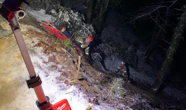 Bursa'nın İnegöl ilçesinde meydana gelen kazada kontrolden çıkan otomobil, 100 metre yükseklikten uçuruma yuvarlandı. Kazada 2'si ağır 5 kişi yaralanırken, yaralıların kurtarılma anı kameraya yansıdı.Kaza, saat 20.30 sıralarında İnegöl'ün kırsal Çayyaka Mahallesi Boğazova mevkiinde meydana geldi. Boğazova'dan İnegöl'e seyir eden Hüseyin R. (28) yönetimindeki 16 ADM 671 plakalı otomobil, sürücüsünün kontrolünden çıkarak 100 metre yükseklikten uçuruma yuvarlandı. Kazayı gören vatandaşlar durumu 112 Acil Çağrı Merkezi'ne bildirdi. İhbar üzerine olay yerine çok sayıda sağlık, jandarma ve itfaiye ekibi sevk edildi. Ekipler araçta sıkışan sürücü ve yolcular Yasin D.(25), Şaban E. (28), Mirali S. (31) ve Alaaddin M.'yi (29) kurtarmak için yoğun çaba harcadılar. Halatlarla yukarıya çekilen yaralılar, ambulanslarla İnegöl Devlet Hastanesi'ne kaldırıldılar. Yaralılardan Yasin D. ve Şaban E.'nin sağlık durumunun ciddiyetini koruduğu öğrenildi.Jandarma ekipleri kazayla ilgili inceleme başlattı.
