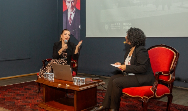 Söyleşi sonunda, Bursa Büyükşehir Belediyesi Genel Sekreter Yardımcısı Mehmet Yıldız, Burcu Kara’ya şehirle olan güçlü bağlarını simgeleyen bir hediye takdim etti.