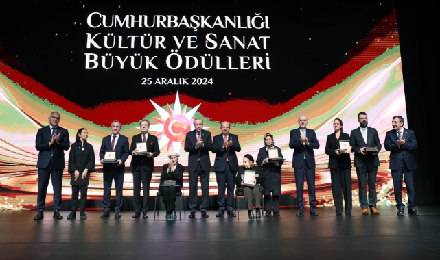 Cumhurbaşkanı Recep Tayyip Erdoğan, Cumhurbaşkanlığı Kültür Sanat Büyük Ödülleri Töreni'nde konuştu.Erdoğan, konuşmasının ardından 2024 Cumhurbaşkanlığı Kültür ve Sanat Büyük Ödülü'ne layık görülen isimlere ödüllerini takdim etti.Buna göre, Bilim Kültür alanında Gönül Tekin, Günay Kut, edebiyat alanında Fatma Karabıyık Barbarosoğlu, müzik alanında Ahmet Özhan, sinema alanında Göksel Arsoy, tiyatro alanında Turan Oflazoğlu, kütüphanecilik alanında Ramazan Minder, zanaatlar alanında Salih Balakbabalar büyük ödüle layık görüldü, Vefa ödülünün sahibi ise Halit Refiğ oldu.