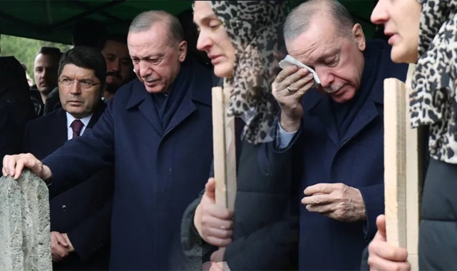 Erdoğan’dan Duygusal AçıklamalarCenaze töreni sırasında konuşma yapan Cumhurbaşkanı Erdoğan, duygu dolu ifadelerle şunları söyledi:"Felaketle yitirdiğimiz 8 kardeşimizi ebediyete uğurluyoruz. Rabbim mekânlarını cennet eylesin, onları şehit mertebesine nail kılsın. Mehmet Bey’le uzun yıllar dostluğumuz ve kardeşliğimiz oldu. Bugün burada hem bir dostluk hem de komşuluk hakkını yerine getirmek için bulunuyoruz. Hepimizin yüreği yandı, tarifsiz bir acı içindeyiz. Rabbim, cennetinde bizleri bir araya getirsin. Aileye ve milletimize sabır diliyorum. Allah hepimizin yardımcısı olsun."Erdoğan’ın bu konuşması sırasında gözyaşlarını tutamadığı görüldü. Törene katılan diğer devlet yetkilileri, milletvekilleri ve vatandaşlar da Cumhurbaşkanı'nın duygusal anlarına ortak oldu.Milletin DayanışmasıTören sırasında vatandaşlar, Gültekin ailesinin acısını paylaşmak ve dayanışma göstermek için cami avlusunu doldurdu.Erdoğan, aileye sabır dileklerini iletirken, törene katılanlarla tek tek ilgilendi. Ayrıca, böylesine acı bir olayın bir daha yaşanmaması için gerekli önlemlerin alınacağı vurgulandı.Cenaze töreni, dualarla ve Gültekin ailesi için edilen niyazlarla son buldu. Cumhurbaşkanı Erdoğan ve diğer katılımcılar, defin işlemlerinin ardından aileyle bir süre daha vakit geçirerek desteklerini ifade etti.