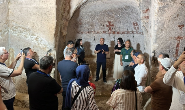 Kayaşehir Büyüledi, Gülşehir Tarihle BuluşturduTGK üyesi gazeteciler, öğleden sonra Nevşehir Belediye Başkanı Rasim Arı'nın organizasyonuyla Kayaşehir'i gezdi.Kültür ve Turizm Müdürlüğü rehberlerinden bilgi alan gazeteciler, Meryem Ana Kilisesi'ni de ziyaret ederek bölgenin zengin tarihi mirasına hayran kaldı. Rehberler, Nevşehir Kalesi çevresinde 437.400 metrekarelik devasa bir alana yayılan Kayaşehir'in, 2015'ten itibaren yapılan araştırmalar sonucunda 312 mekan ve 700 odanın keşfedildiği bir yeraltı şehri olduğunu belirtti. Altı adet bezirhanenin (keten tohumundan ilaç, vernik, mutfak yağı gibi ürünlerin üretildiği atölyeler) yanı sıra, 13. yüzyıla ait Bizans dönemi kaya kiliseleri, çok katlı mezarlar, dini tören alanları ve yeraltı su tünelleri gibi yapıların bulunduğu aktarıldı. Kayaşehir'in güneyindeki Rum mahallesinde Hagios Georgios Kilisesi, Rum hamamı ve geçmişte ilkokul olarak kullanılan bir çan kulesi olduğu bilgisi paylaşıldı. Kazılarda, sikke, kandil, ezgi taşı, şamdan, değirmen taşı gibi birçok tarihi eserin gün yüzüne çıkarıldığı da kaydedildi.Kayaşehir'in ardından 160 kişilik gazeteci kafilesi, Gülşehir'i ziyaret etti. Gülşehir Belediye Başkanı Erkan Çiftçi, TGK üyelerine Açıksaray Harabeleri, Aziz Dimitros Rum Kilisesi, St. Jean Kilisesi ve Mantarkaya hakkında detaylı bilgiler verdi. Başkan Çiftçi, Kızılırmak'ın kucakladığı, eski adı Arapsun olan Gülşehir'in 1948'de bugünkü ismine kavuştuğunu anlattı. İlçenin sembolü haline gelen Mantarkaya'nın yanı sıra, Ovaören köyündeki Yassıhöyük ve Topakhöyük'te Yeni Taş Devri'ne uzanan en eski insan izlerinin bulunduğu ve Yassıhöyük'ün Hitit İmparatorluğu döneminde önemli bir merkez olduğu bilgisi paylaşıldı. Gülşehir'in Hititlerden Bizanslılara kadar birçok uygarlığa ev sahipliği yaptığı, Açık Saray harabeleri ve kaya mezarlarının Roma döneminden, kaya kiliselerin ise Erken Bizans döneminden kaldığı ifade edildi. Başkan Çiftçi, Kurşunlu Camisi, Kepez, Karavezir Külliyesi gibi önemli tarihi eserlerin de ilçede bulunduğunu belirtti. Özellikle 10-11. yüzyıllara tarihlenen Açık Saray Harabeleri'nin önemli bir piskoposluk merkezi olduğu, St. Jean Kilisesi'nin ise bozulmadan günümüze ulaşan duvar resimleriyle dikkat çektiği vurgulandı.