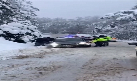 İnegöl ilçesinde, kar yağışı nedeniyle yolda mahsur kalan sürücülere, jandarma ekipleri yardım etti. Sürücülerin ve araçlarının kurtarılması kameralarca kaydedildi.