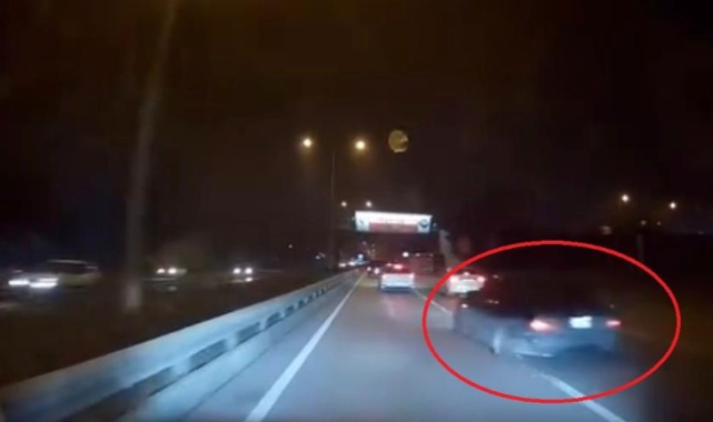Bursa'da ana arterde hızla seyrederken makas atan otomobil, sürücüsünün idaresinden çıkarak refüje çarptı. Kaza anı saniye saniye araç içi kamerası ile kaydedildi.