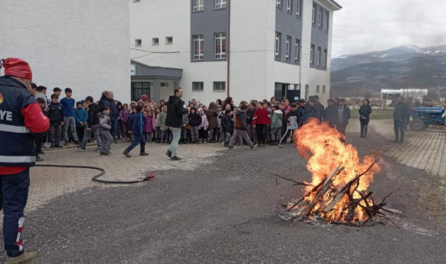 Okullarda yangın eğitimi verdi