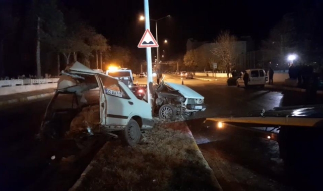 Edirne'nin Uzunköprü ilçesinde aydınlatma direğine çarptıktan sonra ortadan ikiye bölünen Fiat Tofaş marka otomobildeki 2 kişiden biri öldü, diğeri ise ağır yaralandı.