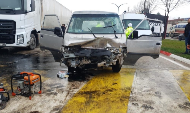 Park halindeki tıra çarpan minibüsteki 3 kişi yaralandı