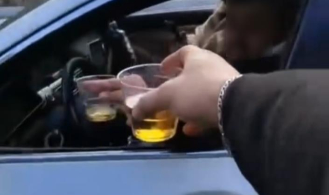 Seyir halinde alkol alıp kadeh tokuşturdu