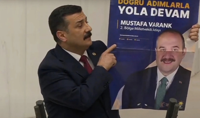 Görüşmeler sırasında yaşanan olayda, Selçuk Türkoğlu’nun TBMM’de açtığı afiş, Mustafa Varank’ın sert tepkisiyle karşılaştı.Türkoğlu’nun meclis kürsüsünden afiş açması,