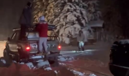 Uludağ'da kar yağışını fırsat bilen bir vatandaş, arabanın arkasına bağladığı halata tutunarak snowboard yaptı. Çılgın snowboardçu şehre araçla değil de board ile indi. Öte yandan Uludağ'da kara saplanan off-road aracının yardımına diğer off-road araçları yetişti.Kış turizminin önemli merkezlerinden biri olan Uludağ, beyaz gelinliğini giydi. Kar kalınlığının 30 santimetreyi geçtiğini gören vatandaşlar Uludağ'a akın etti. Kar yağışını fırsat bilen bir vatandaş aracın arkasına bağladığı halata tutunarak snowboard yaptı. Uludağ'ın virajlı yollarında snowboard ile kayan vatandaşı, arkadaşları cep telefonu kamerası ile kayıt altına alarak ölümsüzleştirildi.Diğer yandan Uludağ'da kara saplanan off-road aracının yardımına çevredeki diğer vatandaşlar koştu. Off-road aracının arkasına bağladıkları halat ile çekmeye çalışsalar da saplanan araç yerinden kıpırdamadı. Kara saplanan aracı, 2 off-road aracı ile çıkarmayı deneyen vatandaşlar uzun uğraşlar sonucu kurtarmayı başardı.