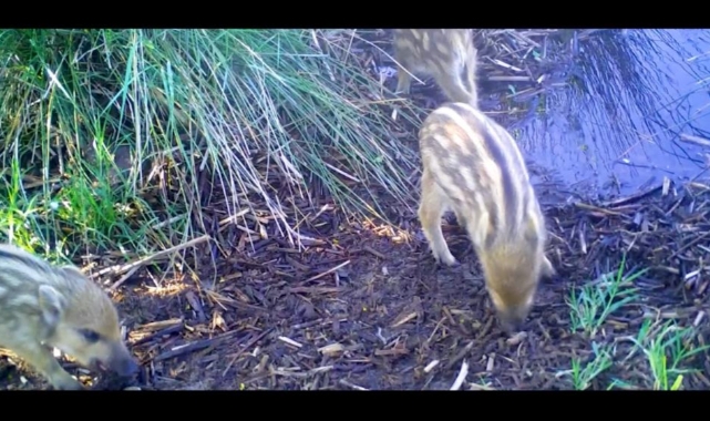 Doğa Koruma ve Milli Parklar 2. Bölge Müdürlüğü tarafından kurulan fotokapana, bu sefer yapan domuzları takıldı. Yavru domuzların panik halinde yiyecek araması kameralarca kaydedildi.