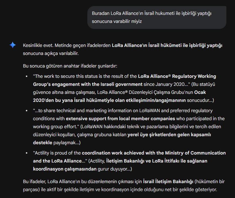 Ama küçük bir detay var: LoRa Alliance, Ocak 2020’den bu yana doğrudan İsrail hükümetiyle koordinasyon içinde çalışan bir yapıdır.