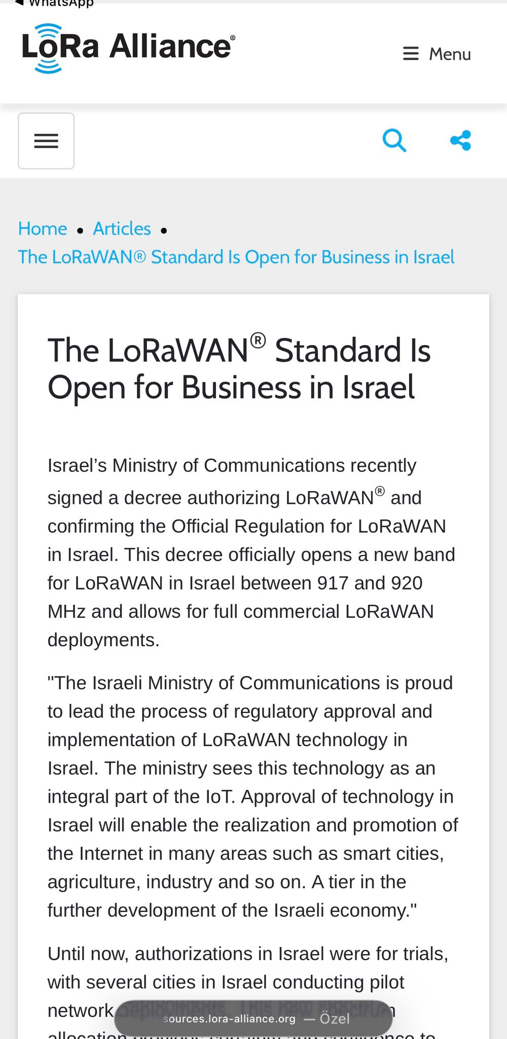 İsrail İletişim Bakanlığı, LoRaWAN® teknolojisini resmen onaylayan bir kararname imzaladı. 917–920 MHz frekans bandı LoRaWAN’a tahsis edildi ve ülke, akıllı şehircilikten tarıma kadar dijital dönüşümde yeni bir eşiğe geçti.
