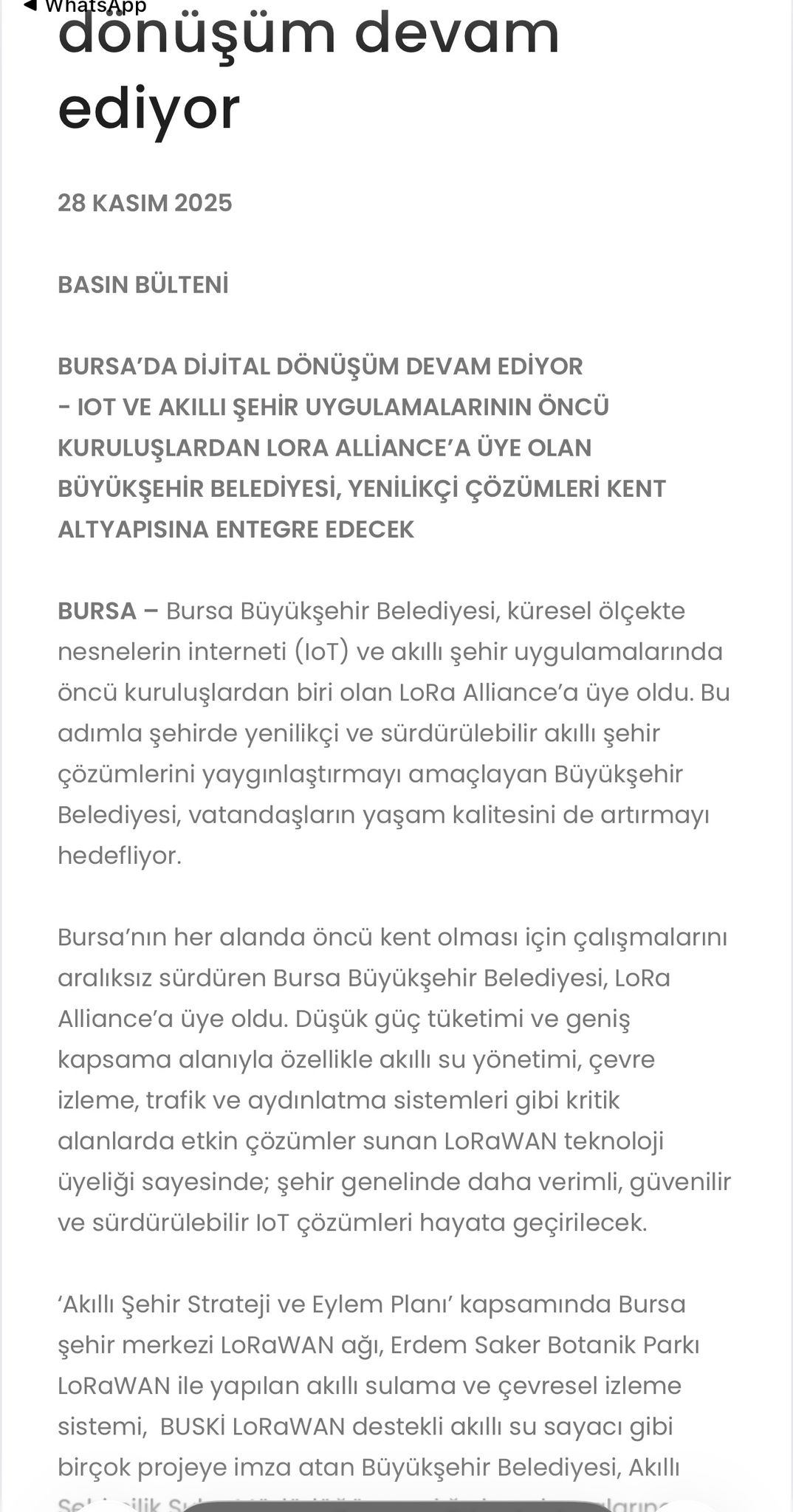 Bursa Büyükşehir Belediyesi, “dijital dönüşüm” adıyla yeni bir adım attı ve küresel ölçekte IoT teknolojileri geliştiren LoRa Alliance’a üye olduğunu duyurdu. Buraya kadar kulağa hoş geliyor…
