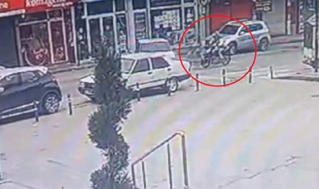 Bursa'da seyir halindeki motosiklet dönüş yapmak için yola çıkan otomobile çarptı. Kazanın etkisiyle havada savrulan motosikletli yaralanırken, kaza anı kameraya yansıdı.Olay, merkez Osmangazi ilçesi Doktor Sadık Ahmet Caddesi üzerinde meydana geldi. Motosikletliyle seyir halinde olan bir sürücü cadde üzerinde ilerlediği esnada, park halinde dönüş yapmak için yola aniden çıkan otomobile çarptı. Kazanın etkisiyle havada takla atan motosiklet sürücüsü yaralanırken, çevredekiler 112 ekiplerini arayıp yardımına koştu. Sağlık ekiplerince ilk müdahalesi olay yerinde yapılan yaralı Çekirge Devlet Hastanesinde tedavi altına alınırken, kazayla ilgili tahkikat başlatıldı.Kaza anı ise güvenlik kamerasına anbean yansıdı